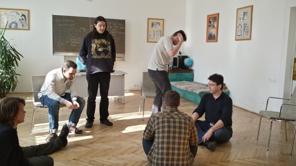 It was time for a lunch break – which I took with Alexander from Austria, and several other people. We were looking for some chinese restaurant, led by the simple logic “those who go first probably know where we’re going”, but in the end we didn’t find it so we had a lunch in the local Burger King. We came back to the Andrea’s lively and fun presentation about Italian larp scene, also touching on subjects as “sheep and beer”. That presentation was originally scheduled before the lunch break, but it was postponed due to the convention starting late and it replaced Sándor’s workshop about basic metatechniques – which was cut from the program due to scheduling and due to the fact that a part of its’ content was covered by other program items.